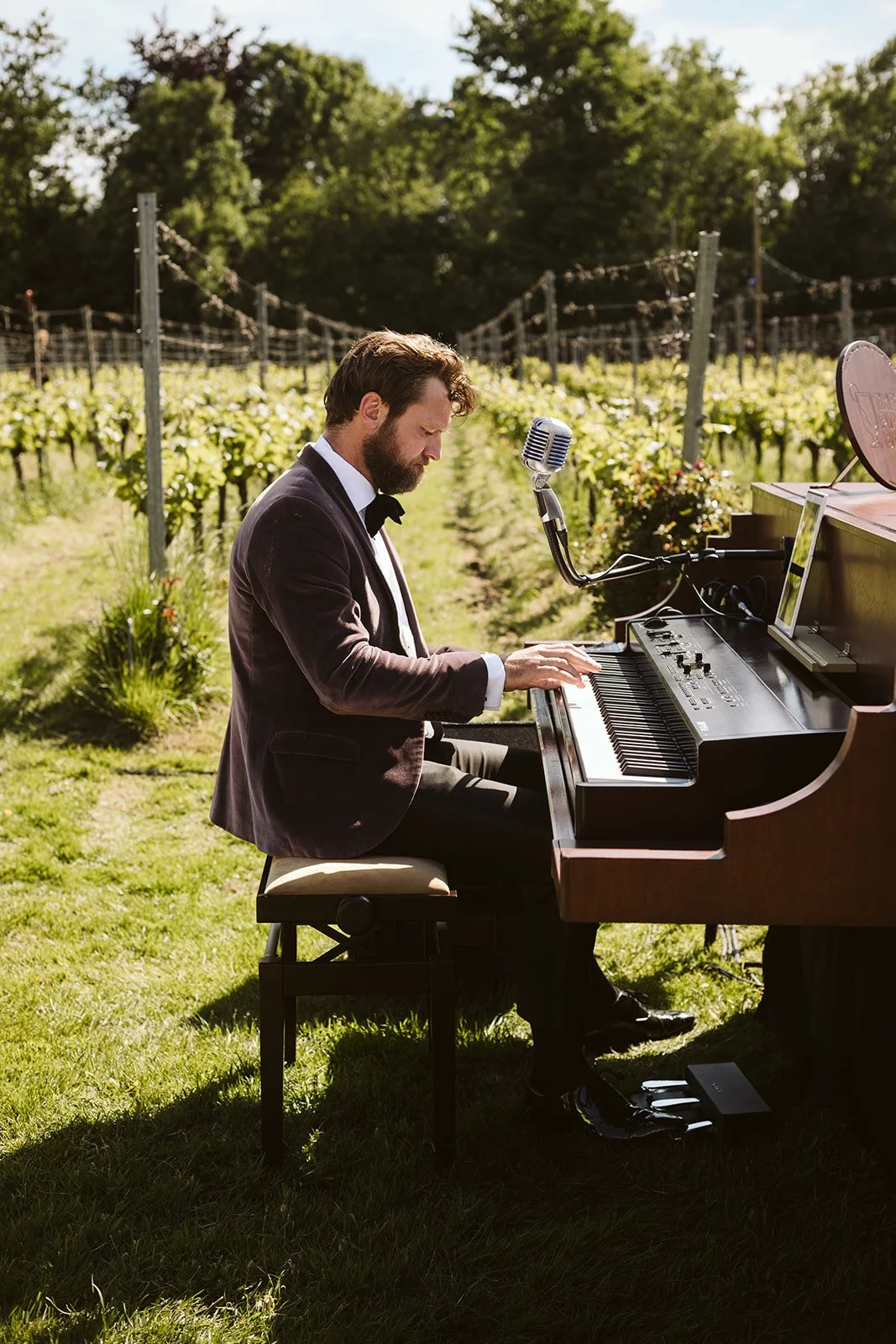Twee live muziekconcepten maken jullie dag extra bijzonder. Eén daarvan brengt een unieke pianobar mee — perfect passend bij de sfeer van de wijngaard.Taart & Toast: